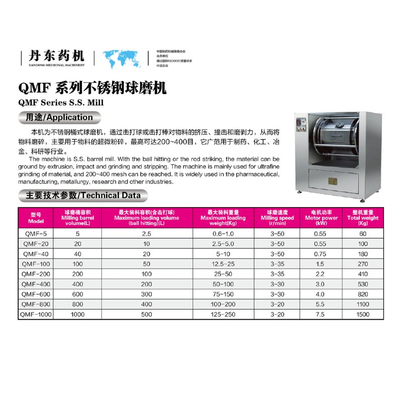 QMF不銹鋼球磨機(jī)
